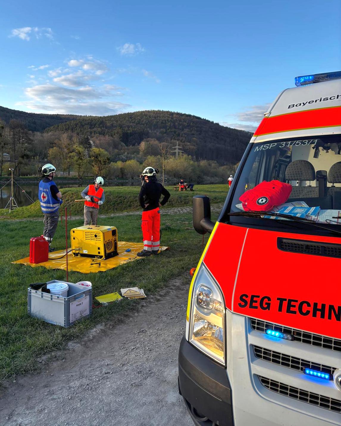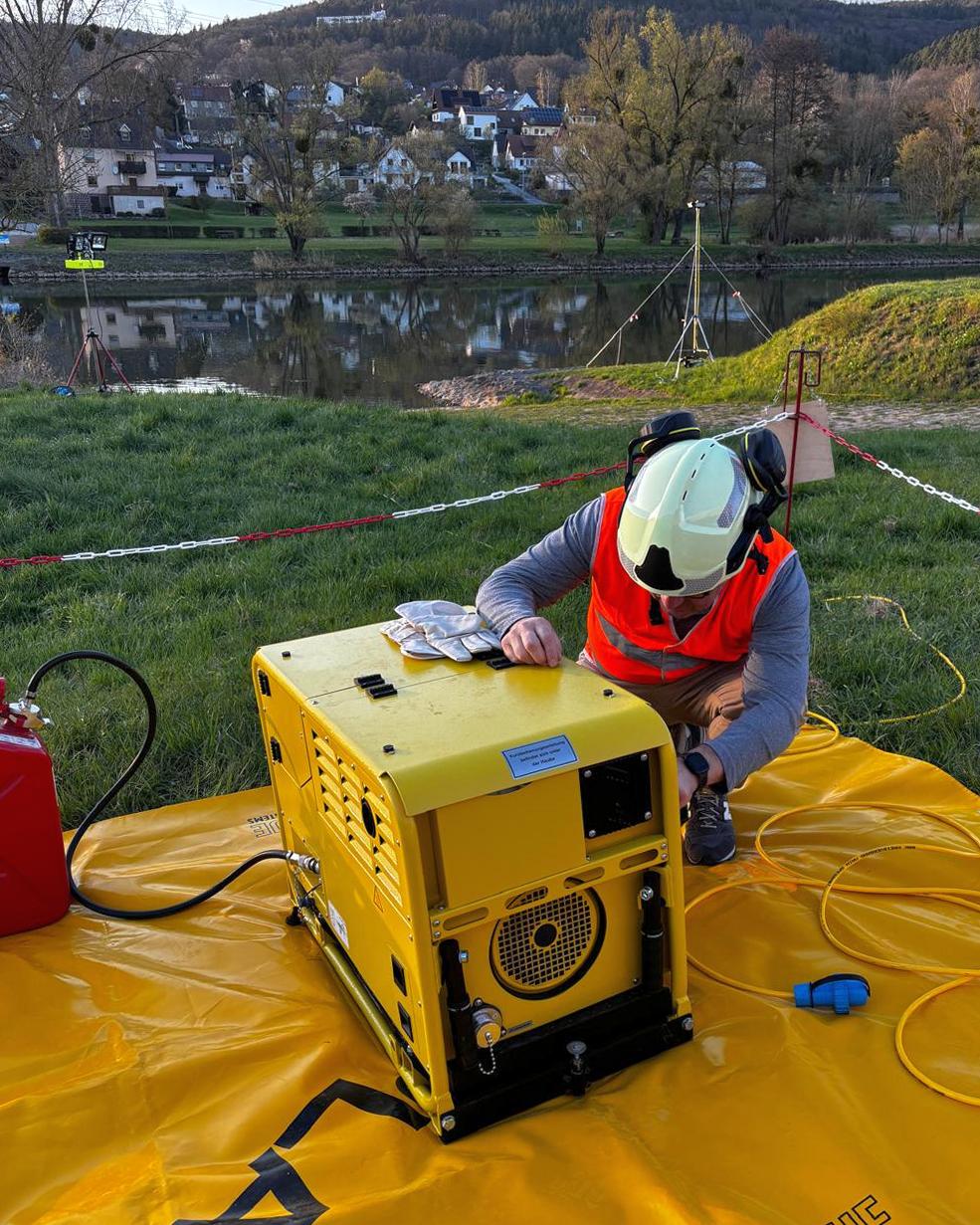 +++ ÜBUNGSALARM für die Schnelleinsatzgruppe Technik und Sicherheit +++ Angenommener Schiffsunfall auf dem Main +++ Fahrzeuge und Boote von THW und Wasserwacht treffen in Kürze ein +++ Leuchten Sie die Anlegestelle in Lohr-Steinbach sowie den daneben liegenden Bereitstellungsraum aus +++