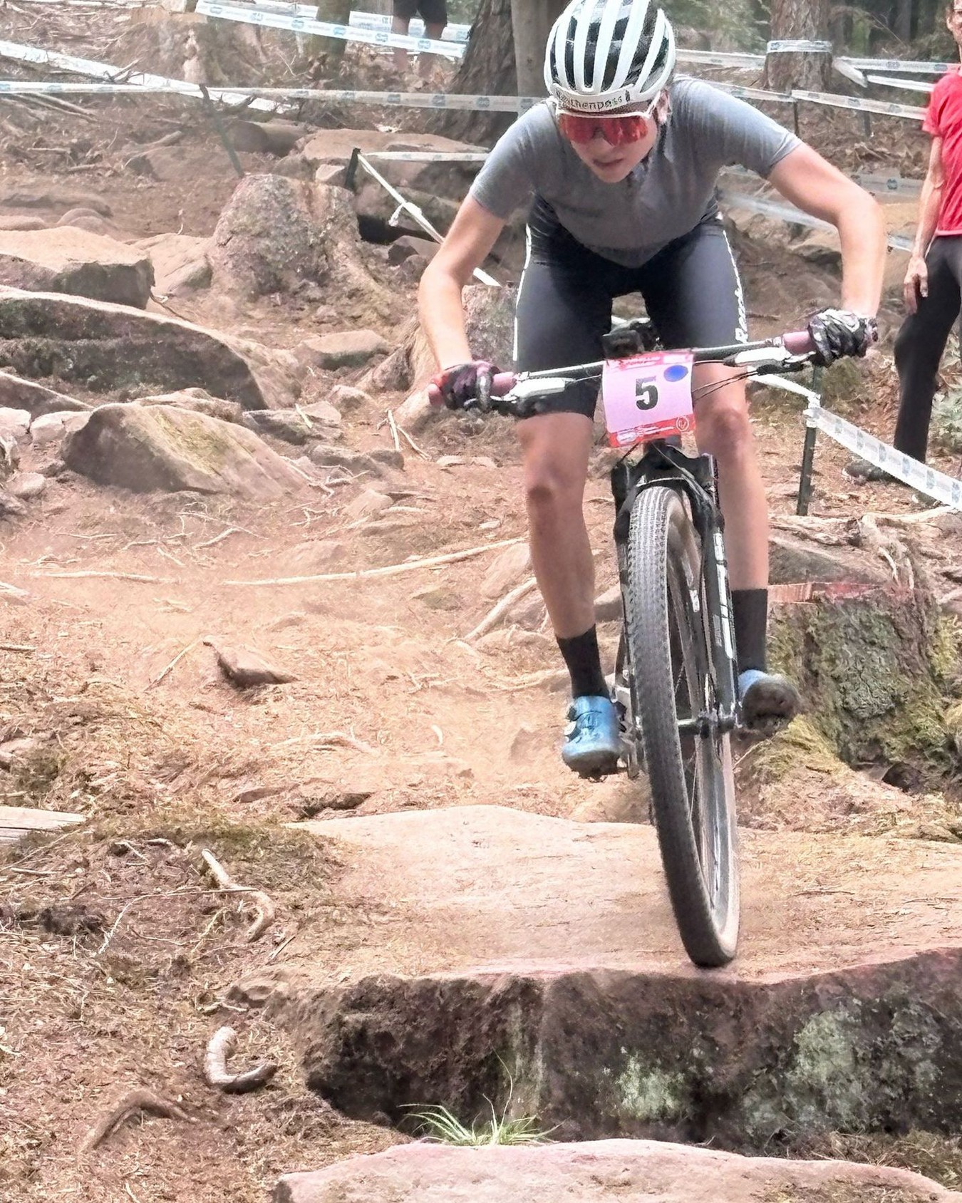 Verschiedene San-Teams waren an kritischen Punkten im Gelände entlang der Strecke stationiert. Hier kann man auch die Geschicklichkeit der Radler beim Durchqueren des Rock Garden oder spektakuläre Sprünge bestaunen.