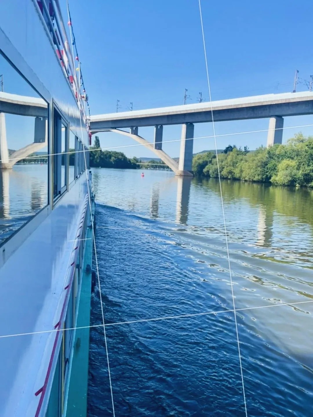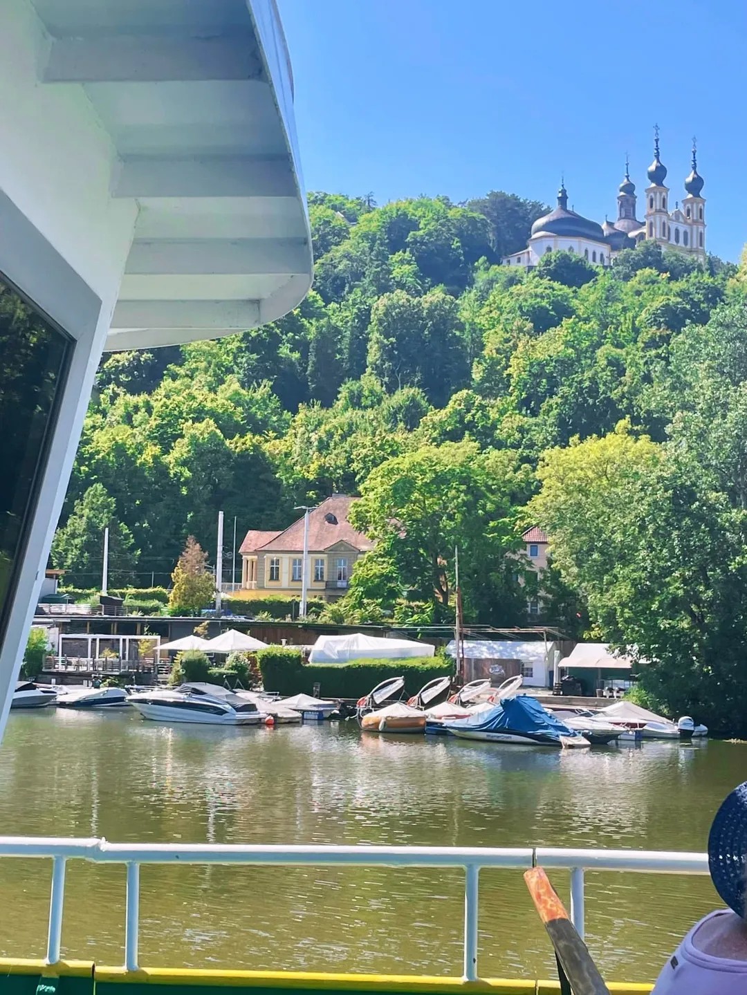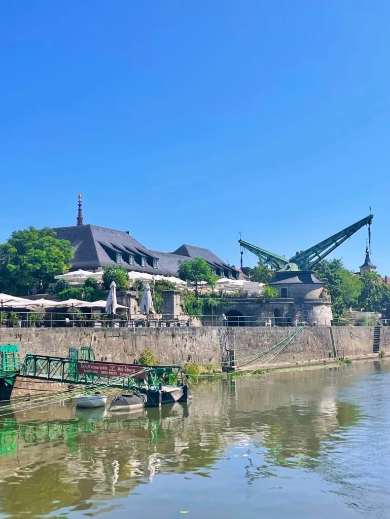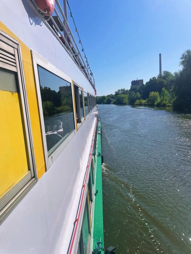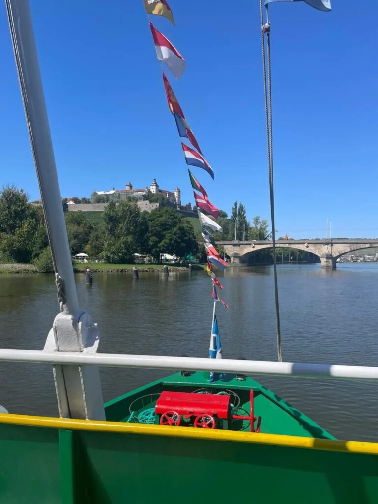 Los ging es per Bus – nach der Einschiffung in Ochsenfurt dann, versorgt mit herzaften Leckereien und schwungvoller Blasmusik, den Main entlang bis zurück nach Veitshöchheim.