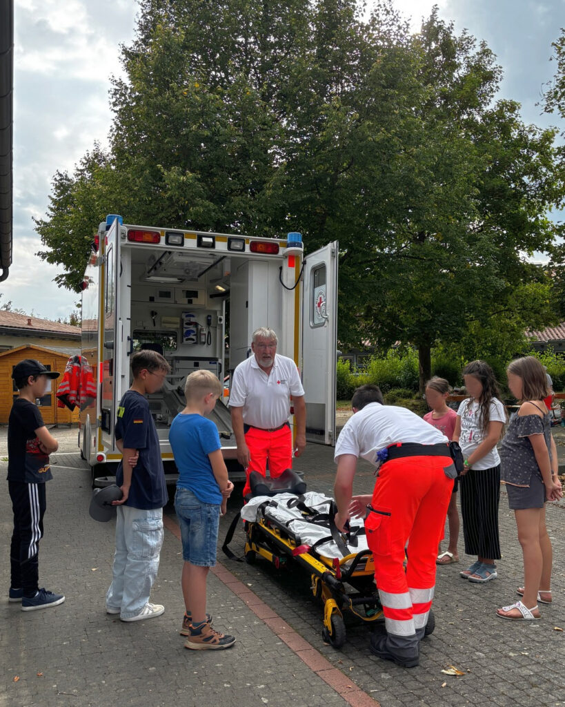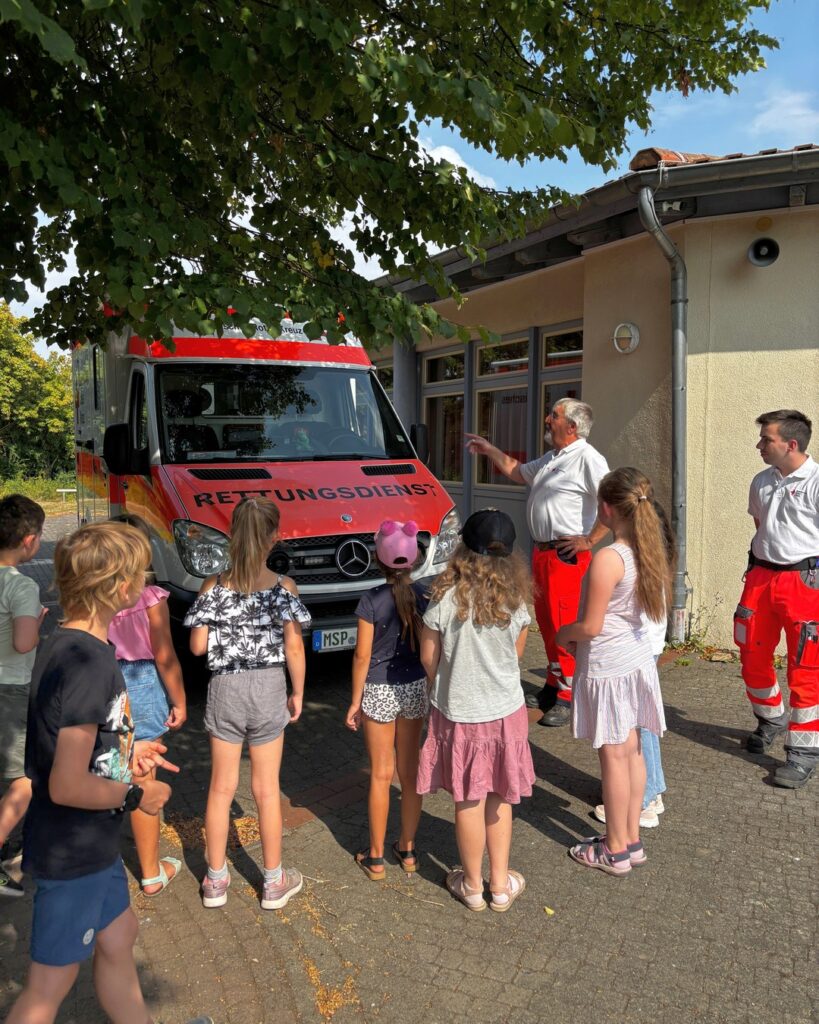 Bei einer kleinen Vorstellungsrunde konnten wir uns besser kennenlernen. So erfuhren wir auch, dass ein paar der Kinder schon einmal mit dem Rettungswagen unterwegs waren oder Zeit im Krankenhaus verbringen mussten 🚑🏥