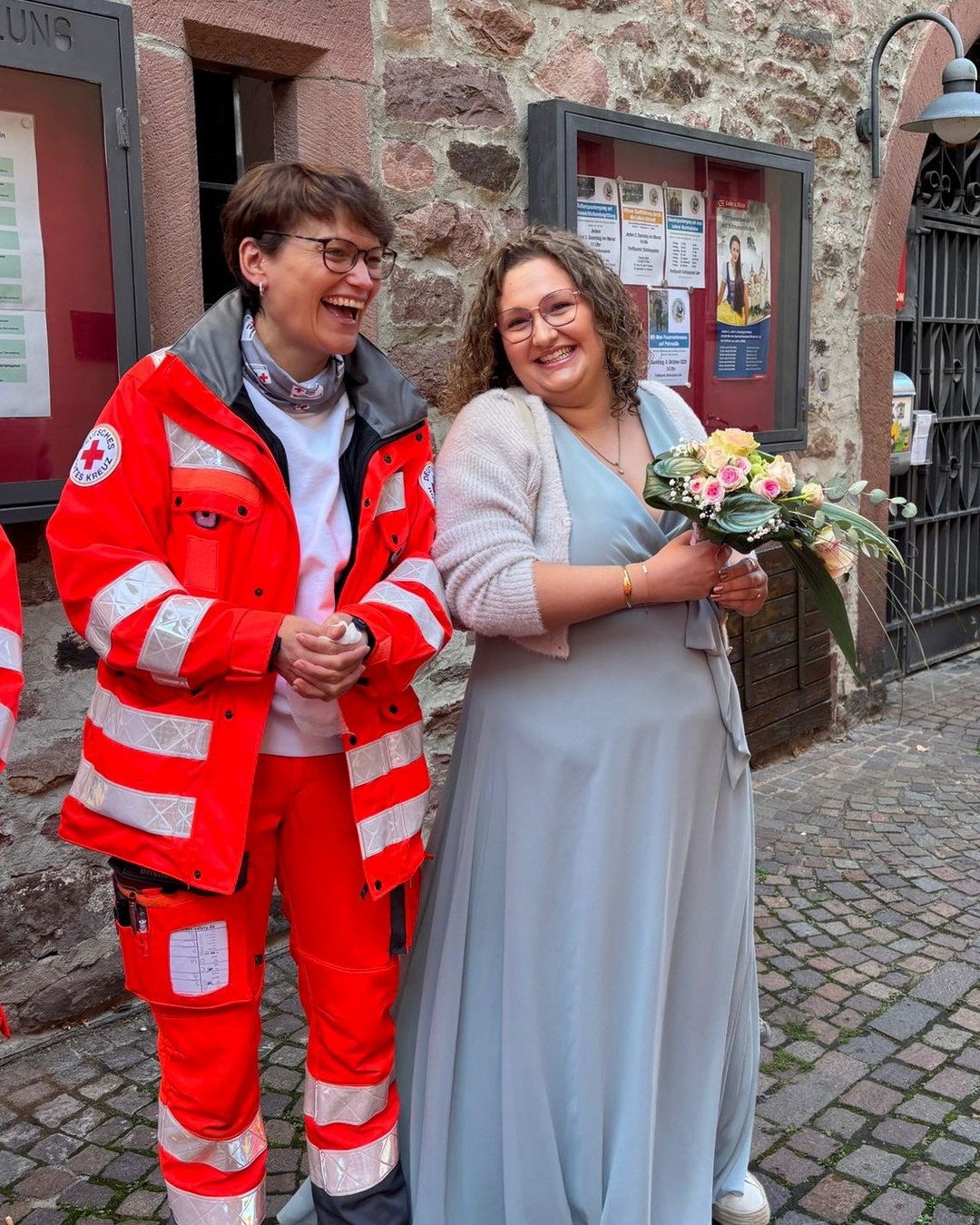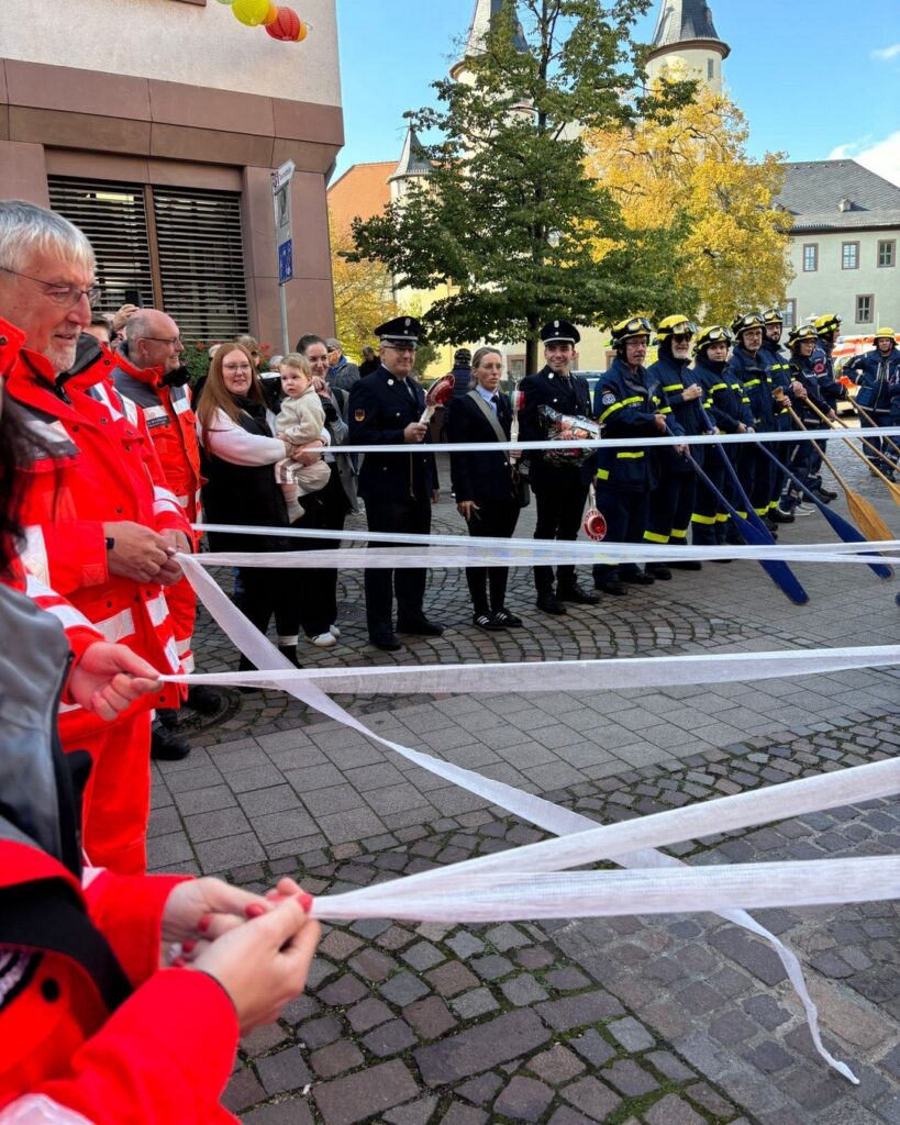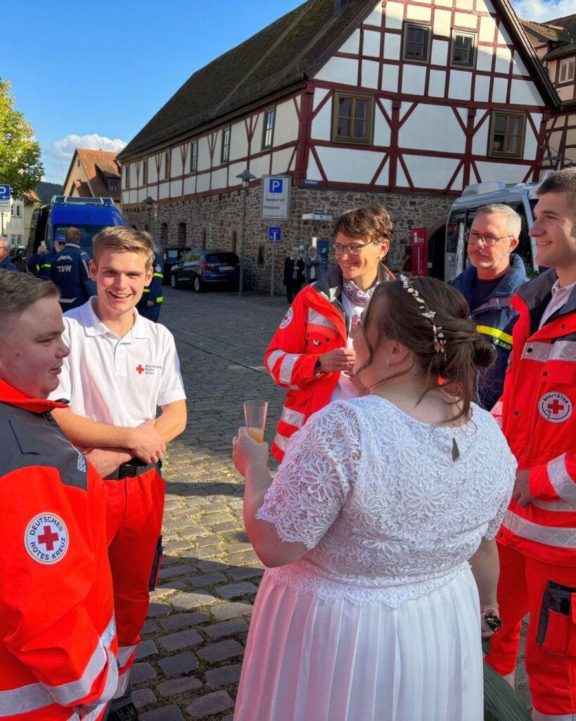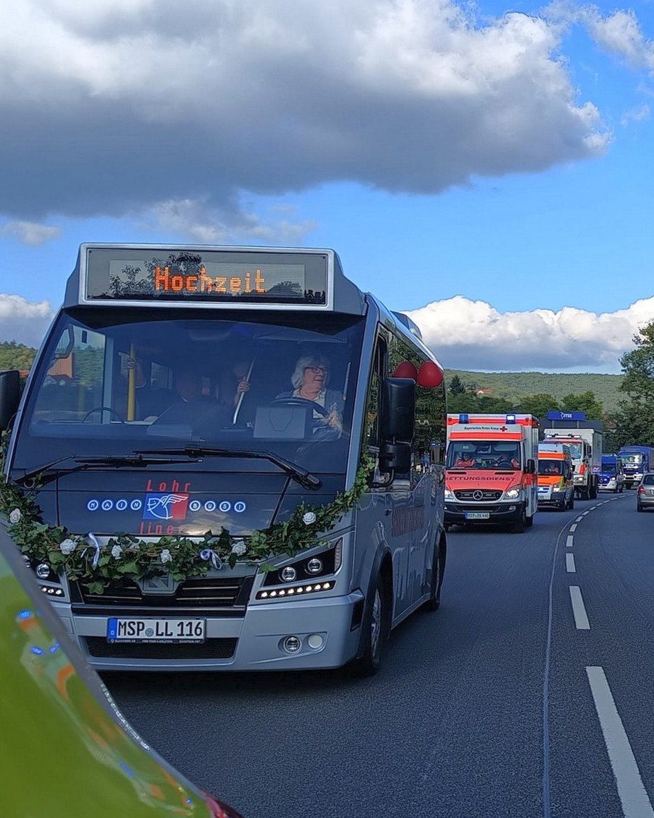Und weil Kai „nebenbei“ auch noch bei Feuerwehr und THW aktiv ist, geriet das Spalier auf dem Schlossplatz zum Stelldichein der Blaulicht-Organisationen 😁 Auch der anschließende kleine gemeinsame Autokorso durch alle Lohrer Kreisverkehre führte mal eben zu einem mittelschweren Verkehrskollaps …
