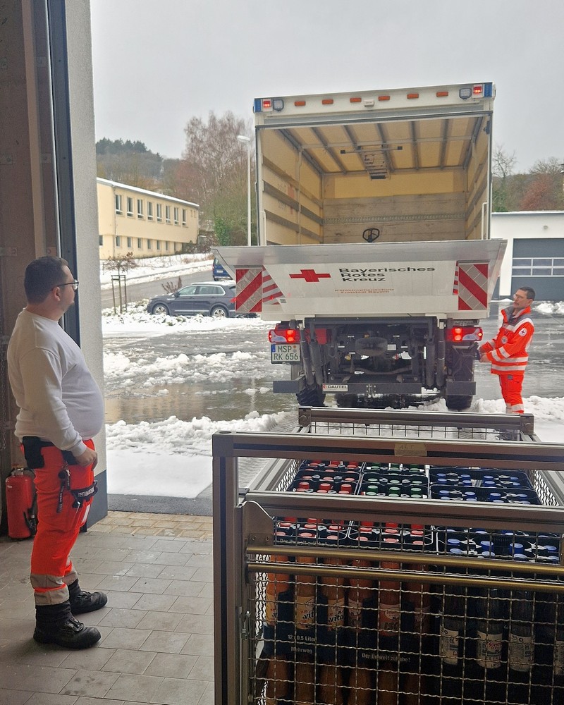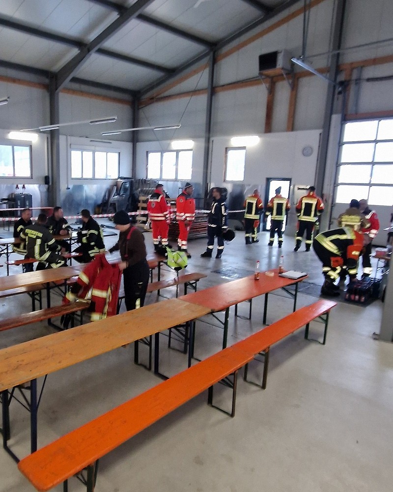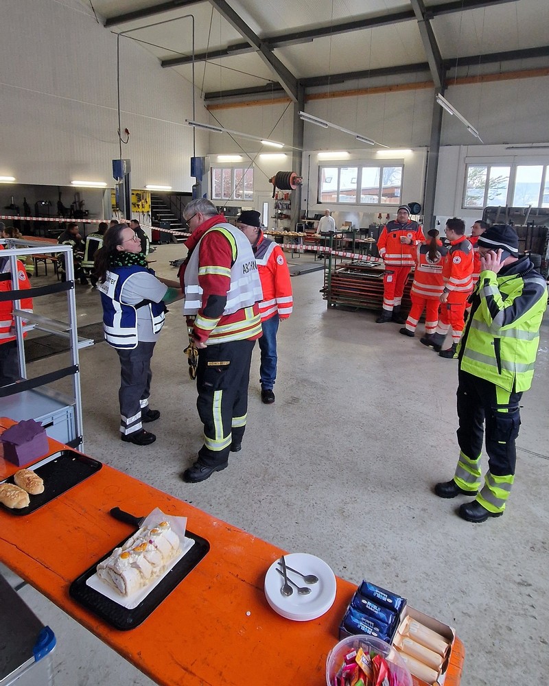 Um 12:37 Uhr erfolgte dann auch die Alarmierung der Schnelleinsatzgruppen Betreuung aus Arnstein und Gemünden sowie unsere SEG Technik & Sicherheit aus Lohr. Der Gerätewagen Logistik wurde an der Wache mit Getränken und Biertisch-Garnituren beladen. Nach Eintreffen in Burgsinn richteten wir gemeinsam die Betreuungsstelle im Gebäude eines Reifenhändlers ein. Wenig später trafen die ersten Feuerwehrler ein, um sich bei Kaffee, Getränken und Kaltverpflegung im Warmen zu stärken.