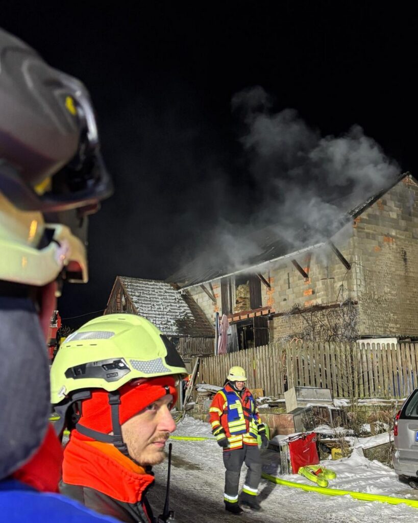 Zwar konnte durch das schnelle Eingreifen verhindert werden, dass das Feuer sich ausbreitete und auch Hasen, Esel und Ziegen konnten in Sicherheit gebracht werden. Allerdings drang das Feuer in das im Dach gelagerte Stroh vor, sodass dieses in anstrengender Arbeit herausgebracht und abgelöscht werden musste. Bei klirrender Kälte zeichnete sich ein langwieriger und personalintensiver Einsatz ab.