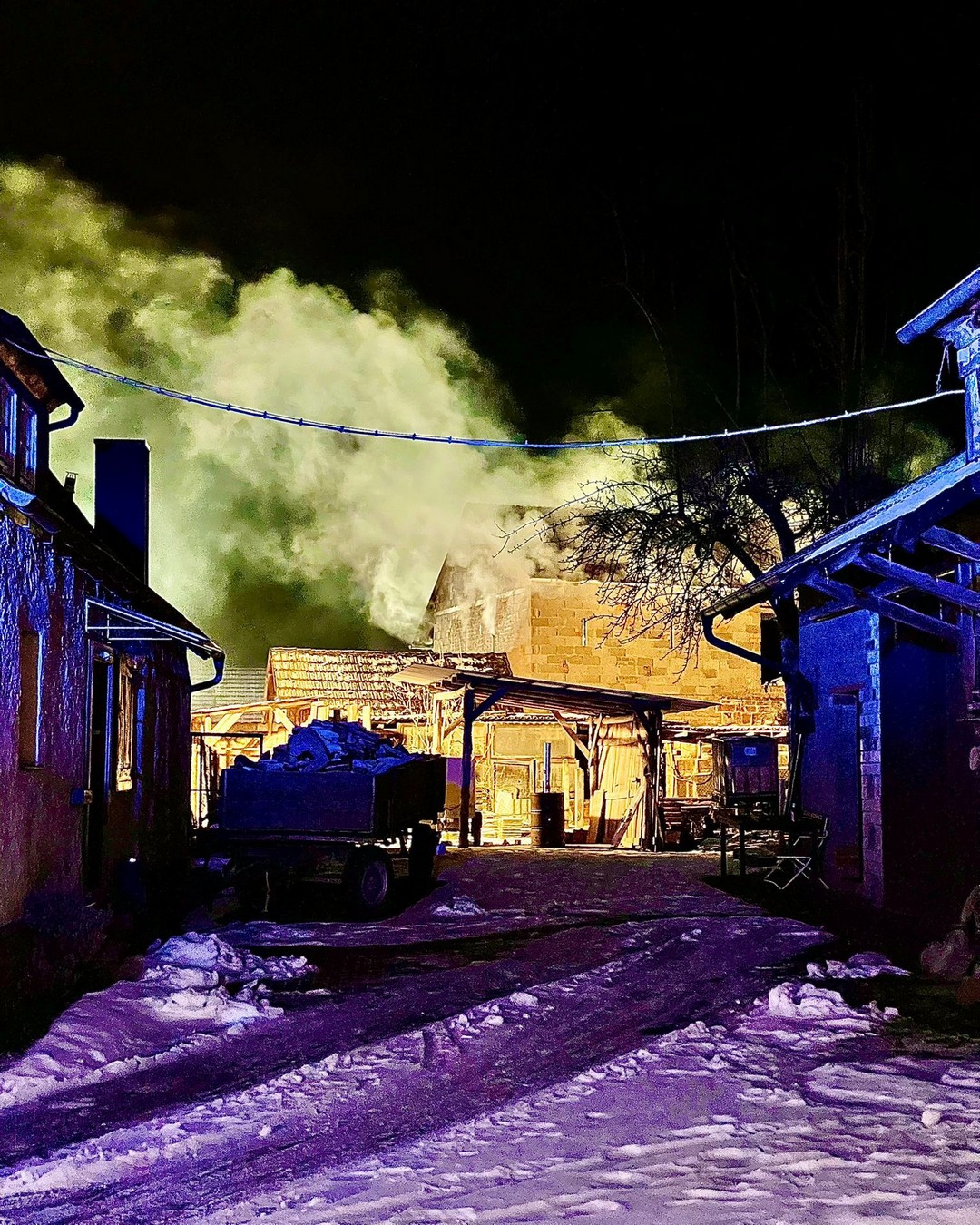Am 11.01.2026 um 21:30 Uhr wurde unsere Unterstützungsgruppe Rettungsdienst zu einer Brandabsicherung alarmiert. Im Lohrer Stadtteil Wombach kam es zu einem Feuer in einer Scheune (Alarmstichwort B4), zahlreiche Wehren waren bereits vor Ort oder auf dem Anmarsch.