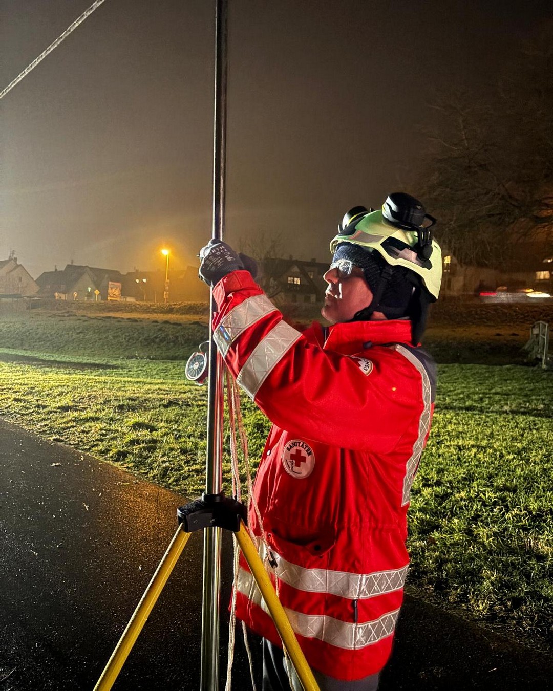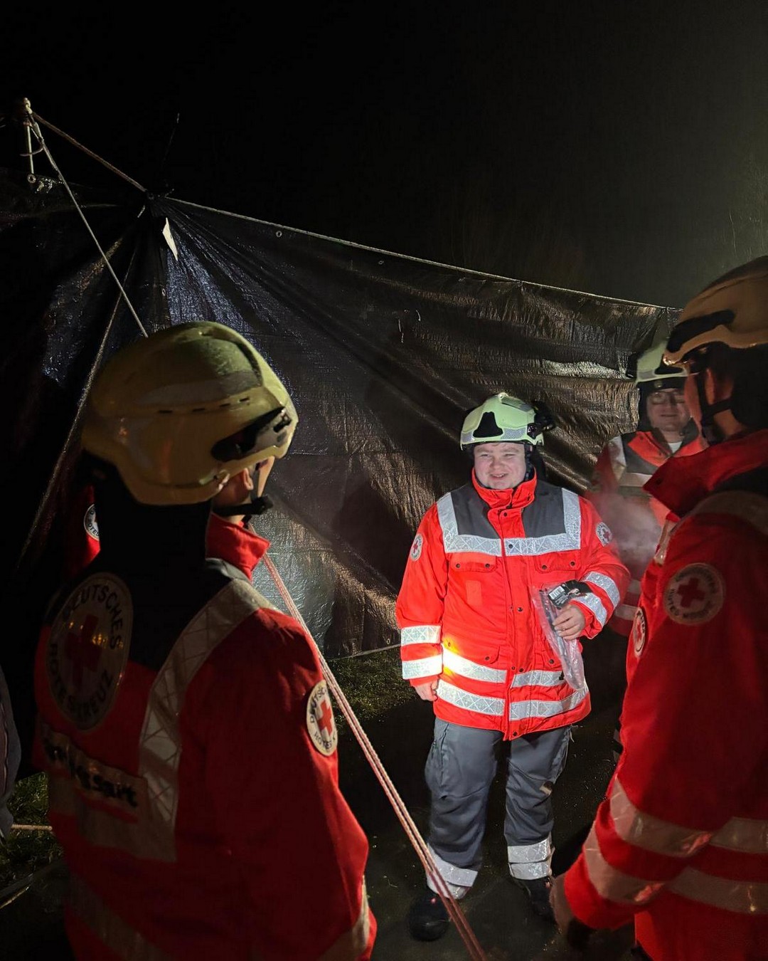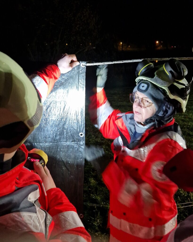 In der von SEG-Führer Volker geplanten Übung ging’s vor allem darum, mit unserem Material zu improvisieren und im Team „out of the box“ zu denken. In nicht mal einer Stunde stand so unser viele Meter langer Sichtschutz am Tretbecken in Sackenbach, der zu guter Letzt auch noch dem Test mit Wind in Orkanstärke standhielt.