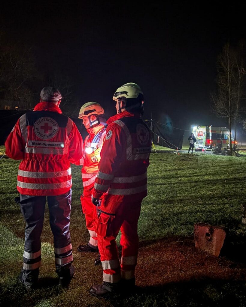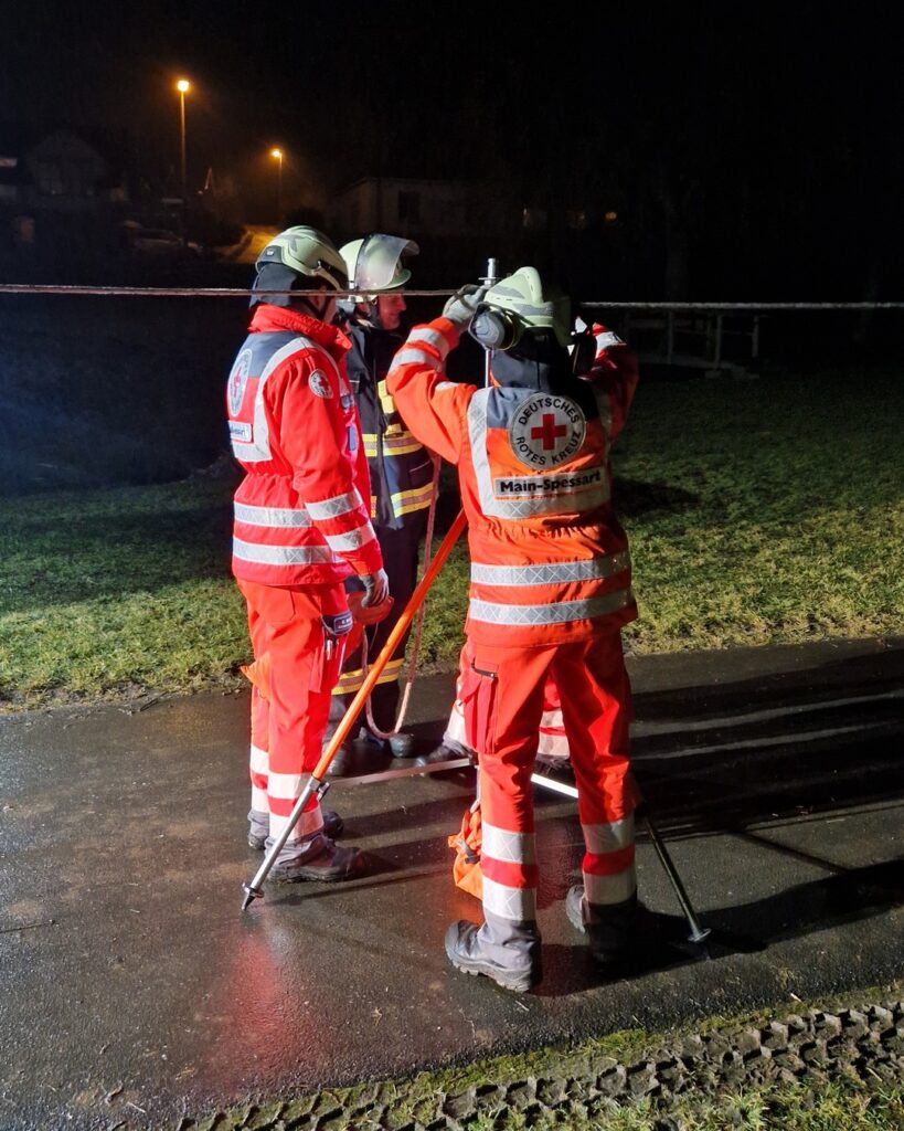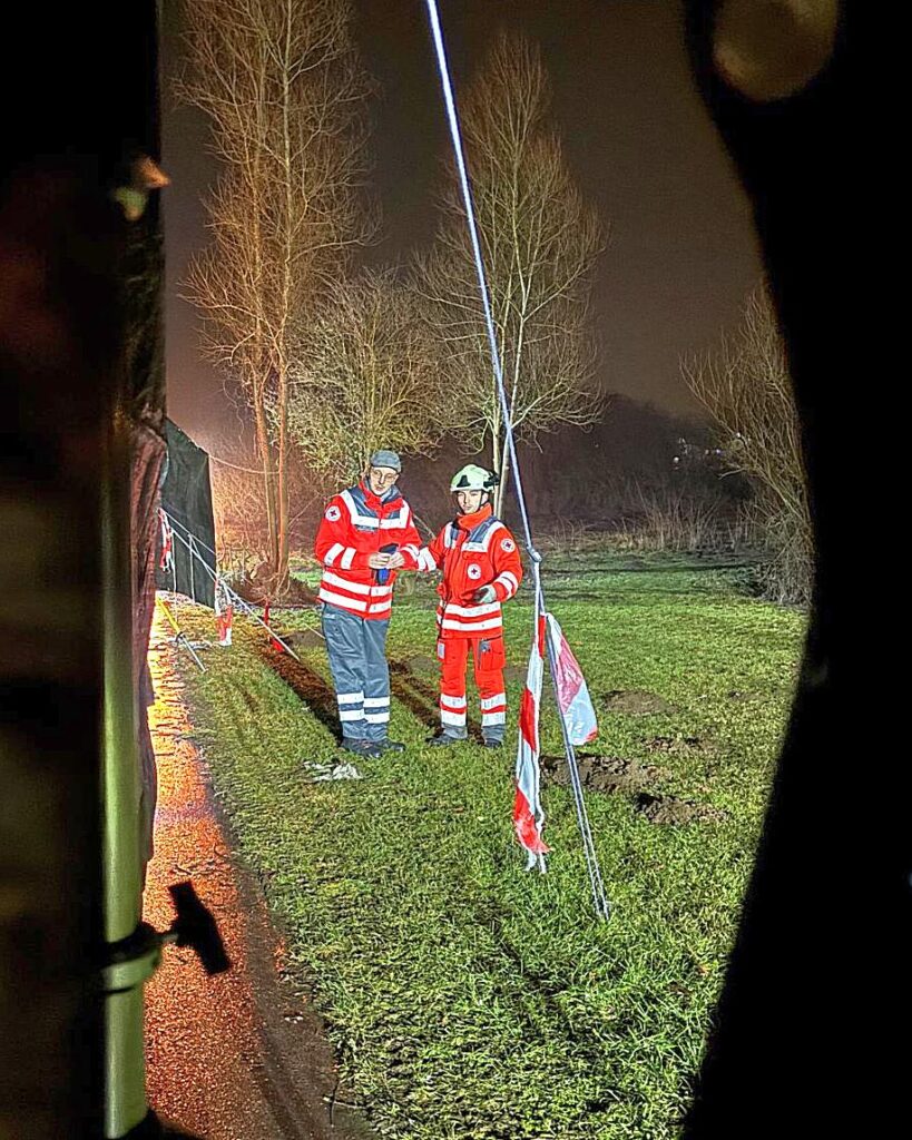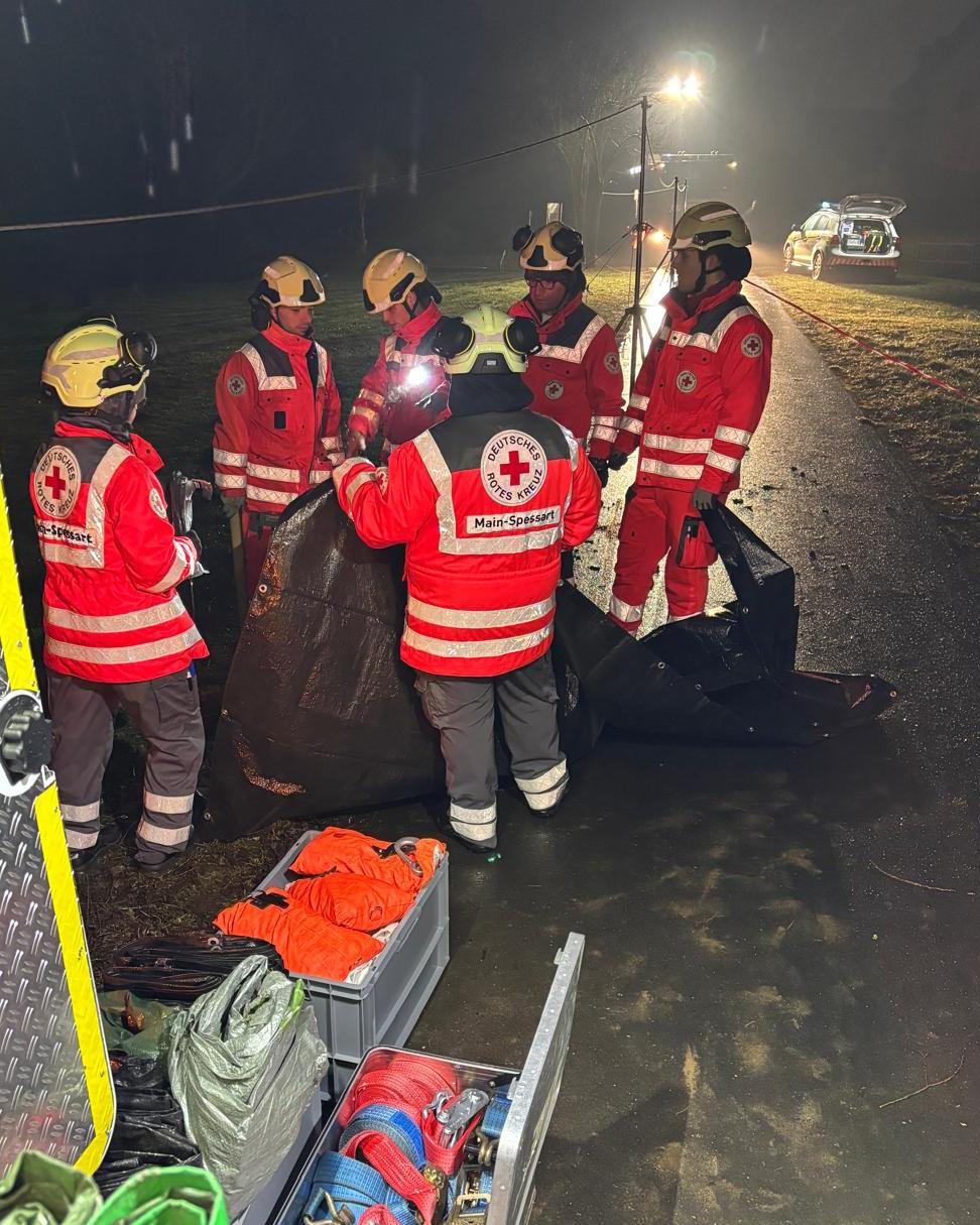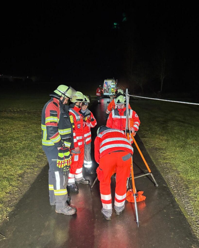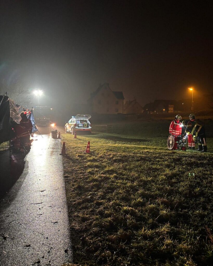 Auf der oberhalb liegenden Bundesstraße kommt es durch Gaffer zu starken Behinderungen und auch Auffahrunfällen. Der Großteil weiterer Kräfte von Feuerwehr und THW sind in einem anderen Großeinsatz gebunden. PSNV-E ist vor Ort.