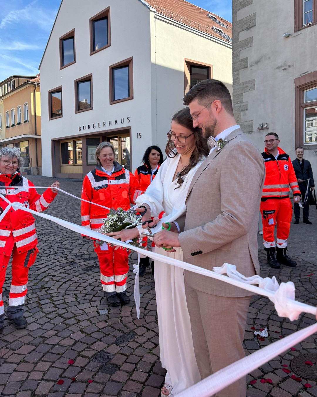 Bei Kaiserwetter durften wir zusammen mit den Freunden von der Bereitschaft Gemünden sowie hauptamtlichen Kolleg*innen am Samstag den 11.04. in Hammelburg Laura und Micha zu ihrer Trauung gratulieren.